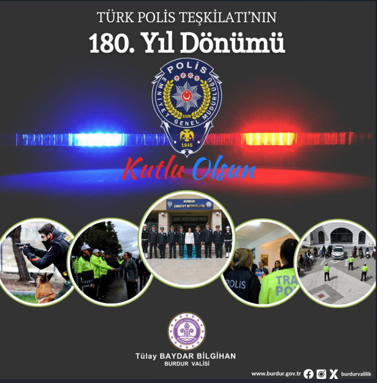 Burdur Valisi Tülay Baydar Bilgihan, Polis Teşkilatının 180. Yıl Dönümü nedeniyle mesaj yayınladı.