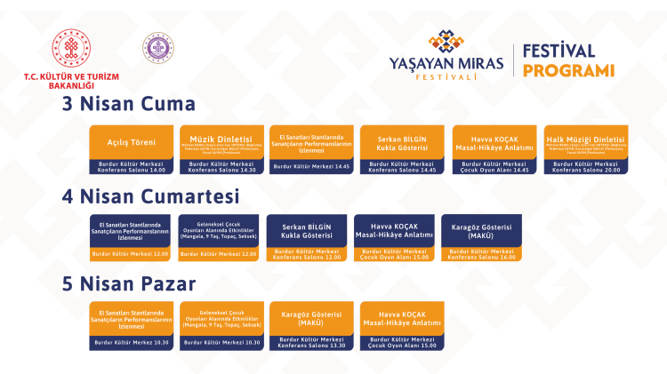 Kültür ve Turizm Bakanlığı’nın katkılarıyla düzenlenen, “Burdur Yaşayan Miras Şöleni”, 3-5 Nisan’da sanatseverlerle buluşacak.