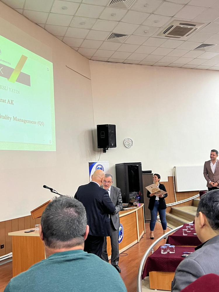 2025 yılı içerisinde gerçekleşen “SSCI’li indeksli yayınlar” kapsamında “Karamanoğlu Mehmetbey Üniversitesi İktisadi ve İdari Bilimler Fakültesi Uluslararası Ticaret ve İşletmecilik Bölümü”nde düzenlenen tören eşliğinde teşekkür belgesi takdim edilen hemşehrimiz Doç. Dr. Murat Ak yaptığı açıklamada; “Tıpkı geçen yılda olduğu gibi bu yılda bizim için onur hanemize yüce Allah’ın izniyle yazdırdığımız çok anlamlı ve kıymetli bir ödül oldu. Tabi ki bu çalışmalar bireysel, tek başına gerçekleşen çalışmalar değil. Bir ekip halinde çok kıymetli ortak yazarlarımız ile alanında uzman meslektaşlarımız ile yoğun bir uğraş ve yüksek bir emek ile vuku bulan çalışmalar. Hepsine aracılığınız ile teşekkür ve şükranlarımı iletmek istiyorum. Ayrıca yine bu onur belgemizi üzerimde çok büyük emekleri olan rahmetli anne ve babama ithaf etmek istiyorum” dedi.