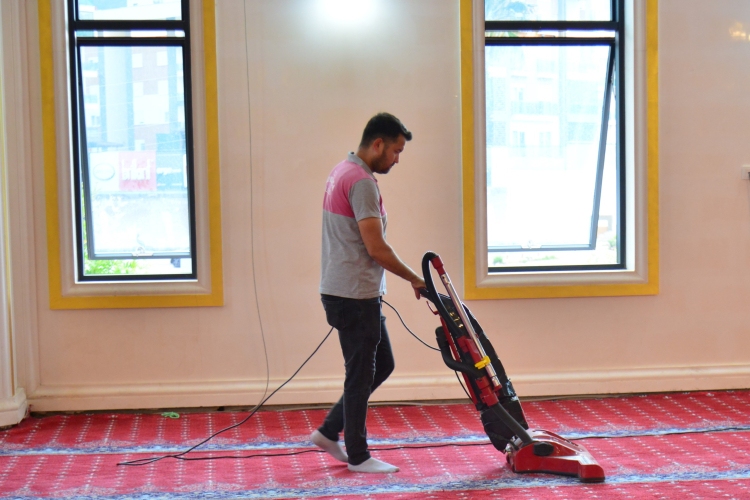 Kumluca Belediyesi ekipleri ilçe merkezi ve bağlı mahallelerdeki camilerde bayram temizliği çalışması gerçekleştiriyor.