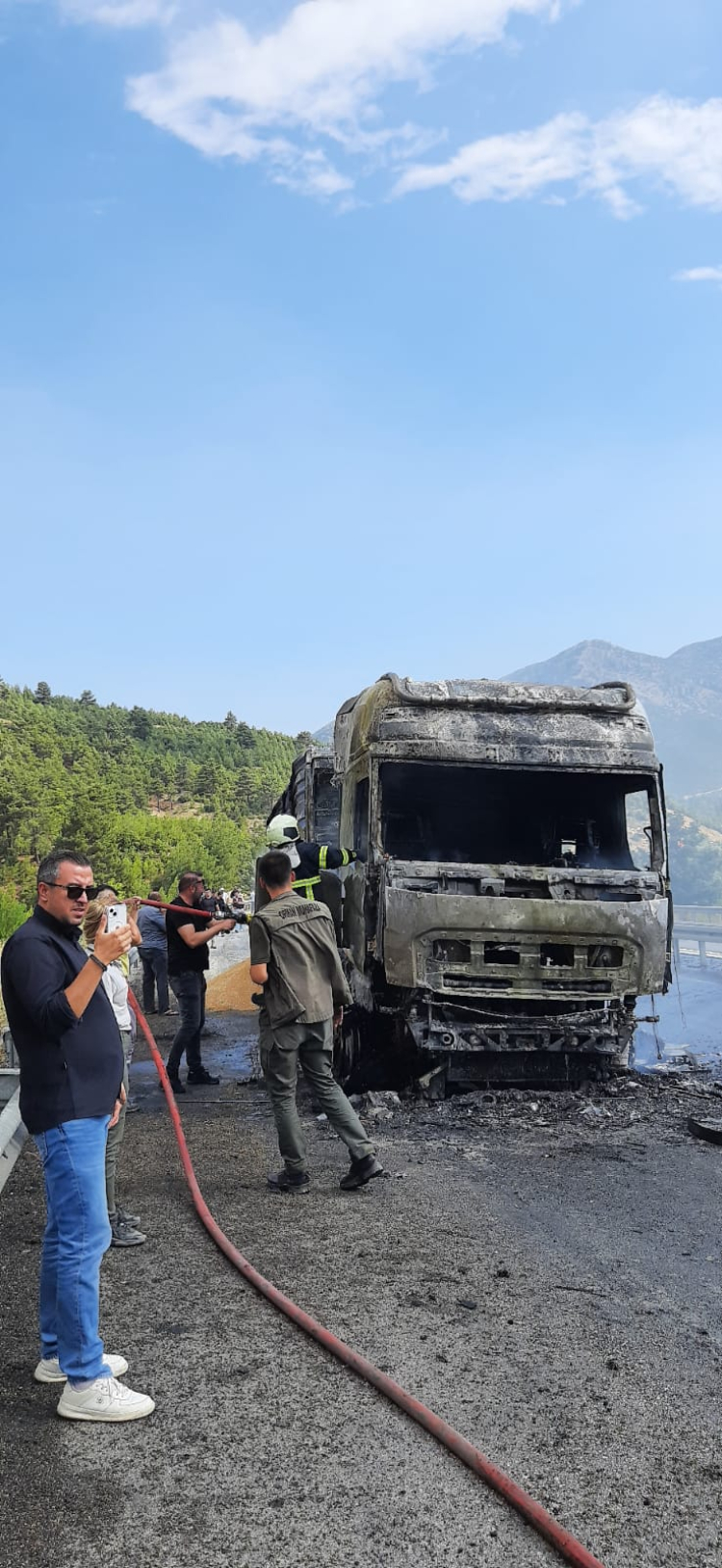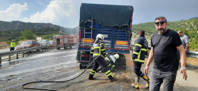 Yangın itfaiye ekipleri tarafından söndürüldü. Edinilen bilgilere göre bugün saat 16: 40 sularında Antalya-Burdur karayolu Çeltikçi Tekke köyü rampasında buğday yüklü tırda yangın meydana geldi.