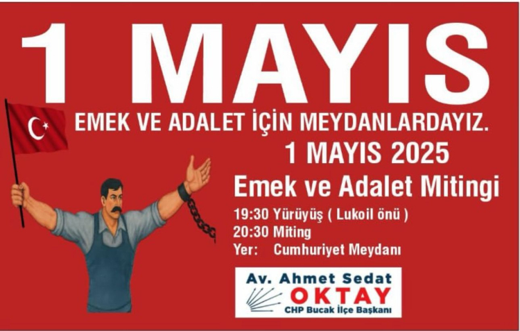 CHP Bucak İlçe Başkanı Ahmet Sedat Oktay, 1 Mayıs’ta düzenlenecek Emek ve Adalet Mitingi için tüm Bucak halkını Programa davet etti
