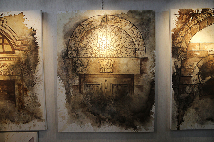 Sönmez, demlenmiş çay ve pişirdiği kahveyi karıştırıp tuvaline döktüğünü, kurumasının ardından tuvaline çizimini yaptığını belirtti.