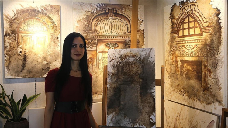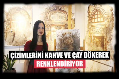 Hataylı ressam Esra Sönmez, çizimlerini kendi geliştirdiği teknikle çay ve kahve kullanarak renklendiriyor.