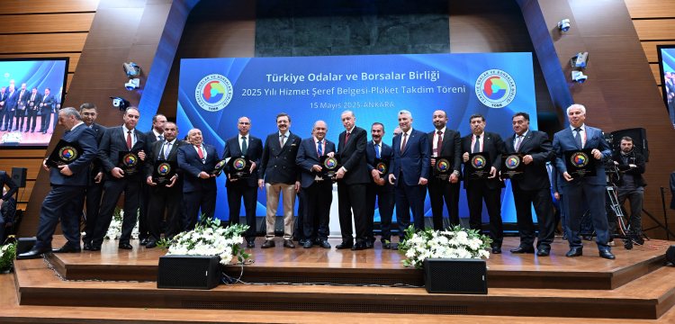 Cumhurbaşkanı Recep Tayyip Erdoğan Burdur Ticaret ve Sanayi Odası (BUTSO) Yönetim Kurulu Başkanı Yusuf Keyik’e TOBB 2025 Yılı Hizmet Şeref Belgesi-Plaket Taktim Töreninde plaket takdim etti.
