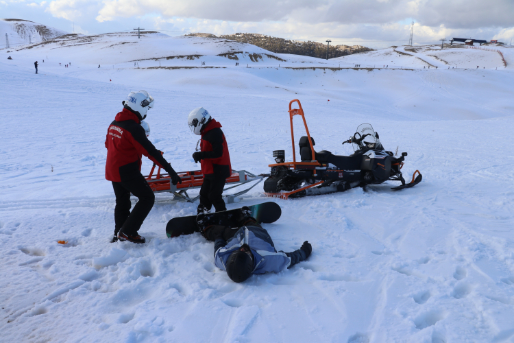 Zorlu arazi ve hava koşullarında görev yapabilecek özel eğitimli personelden oluşan JAK timleri, kar motosikletleri ve teknik donanımlarla yerli ve yabancı ziyaretçilerin güvenli şekilde kayak yapabilmesi için çalışmalarına devam ediyor.