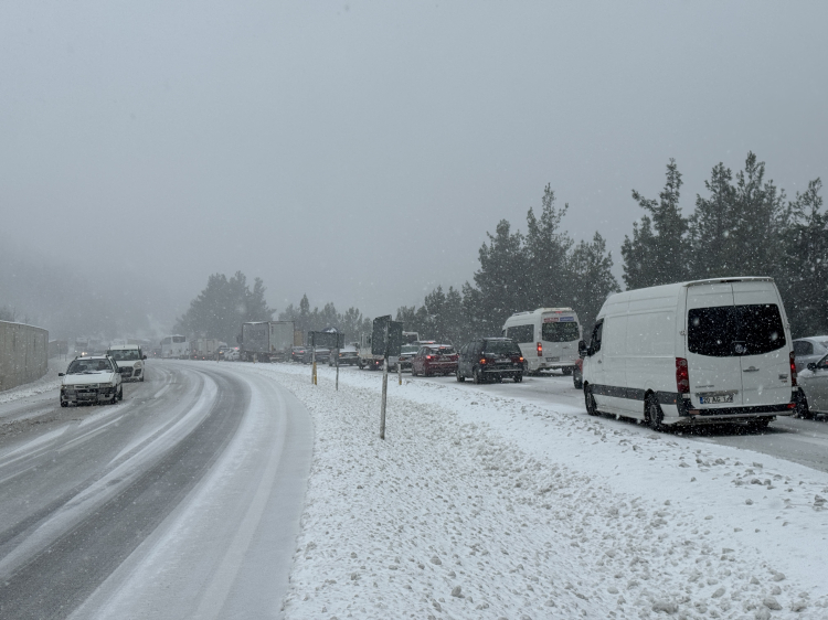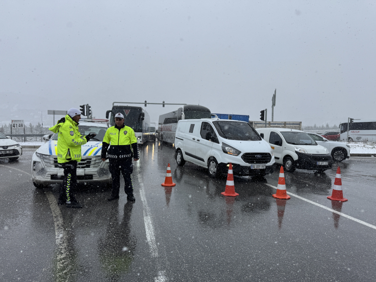 Öte yandan trafik ekipleri, Kelleci Kardeşler mevkisinde oluşturduğu güvenlik noktasında kar lastiği ve zincir kontrolü yaparken, büyük tonajdaki araçların geçişine izin vermedi.