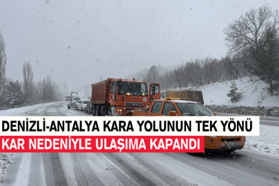 Denizli'de etkili olan kar yağışı nedeniyle Denizli-Antalya kara yolunun Antalya yönünde ulaşım sağlanamıyor.
