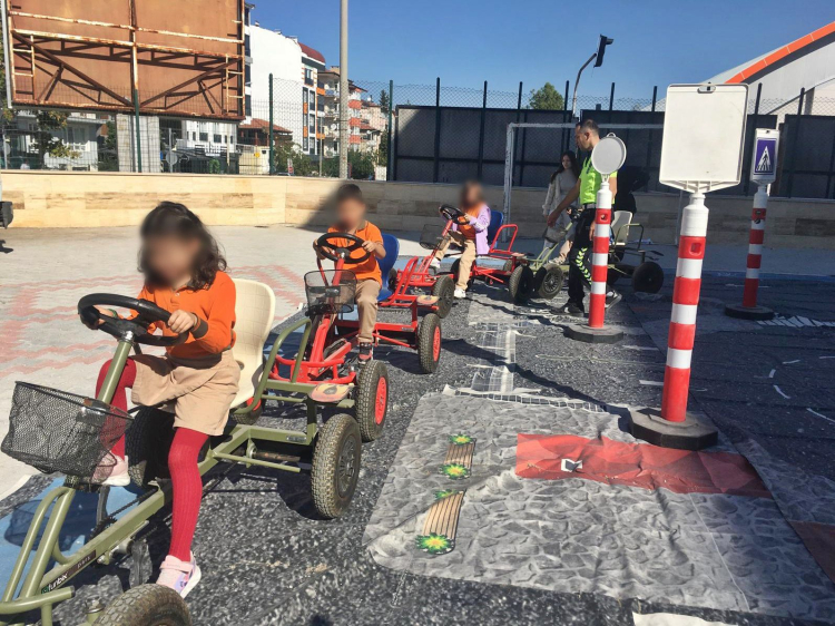 Taşınabilir çocuk trafik eğitim parkında dışarıda oyun oynama alanlarından, sokaklarda ve caddelerde karşıdan karşıya geçerken dikkat etmeleri gereken trafik kuralları konuları hakkında toplamda 308 öğrenciye eğitim, bilgilendirme ve farkındalık faaliyetleri yapılmıştır. Kamuoyuna saygıyla duyurulur" denildi.