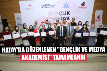 Hatay'da, "Afetten Etkilenen Gençlerin Güçlendirilmesi ve Desteklenmesi" için düzenlenen "Gençlik ve Medya Akademisi" eğitim programını tamamlayan kursiyerler törenle sertifikalarını aldı.