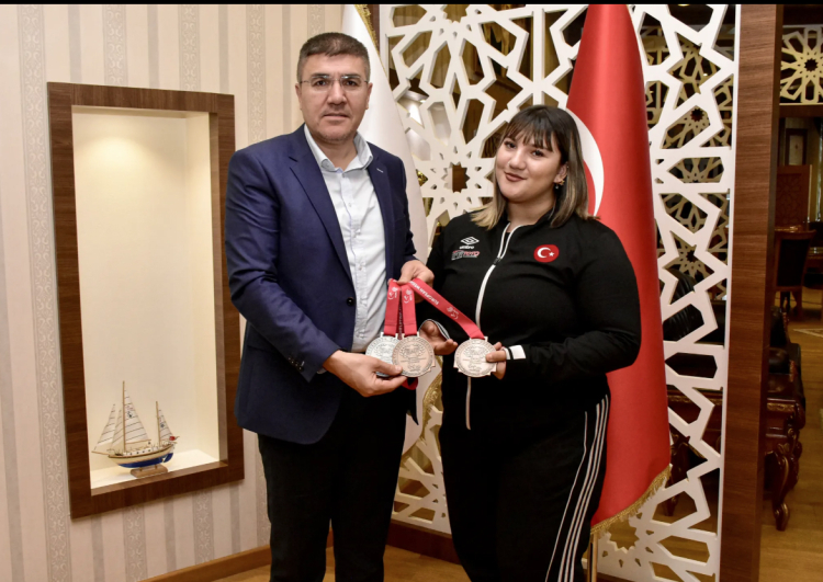 Milli Halterci Fatmagül Çevik, kazandığı madalyayla birlikte Mehmet Akif Ersoy Üniversitesi (MAKÜ) Rektörü Prof. Dr. Hüseyin Dalgar’ı makamında ziyaret etti. Başarılı sporcu, elde ettiği madalyayı Rektör Dalgar’a takdim ederek desteklerinden dolayı teşekkürlerini sundu.