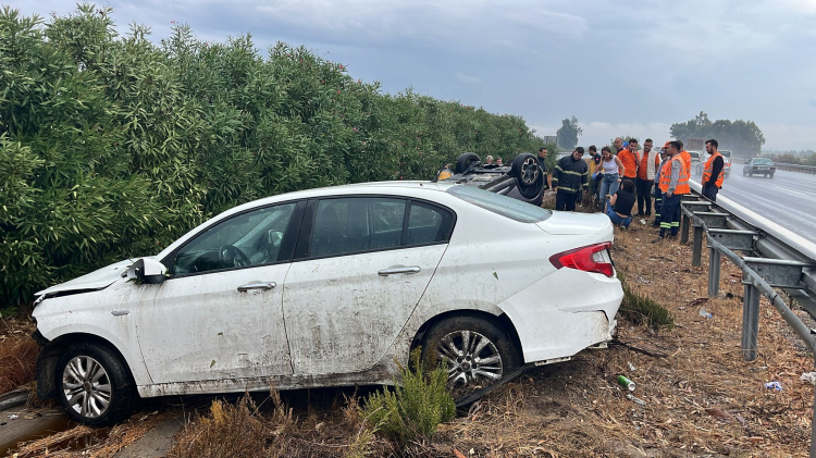 Kazanın ardından araçlar bariyerleri aşarak şarampole devrildi.
