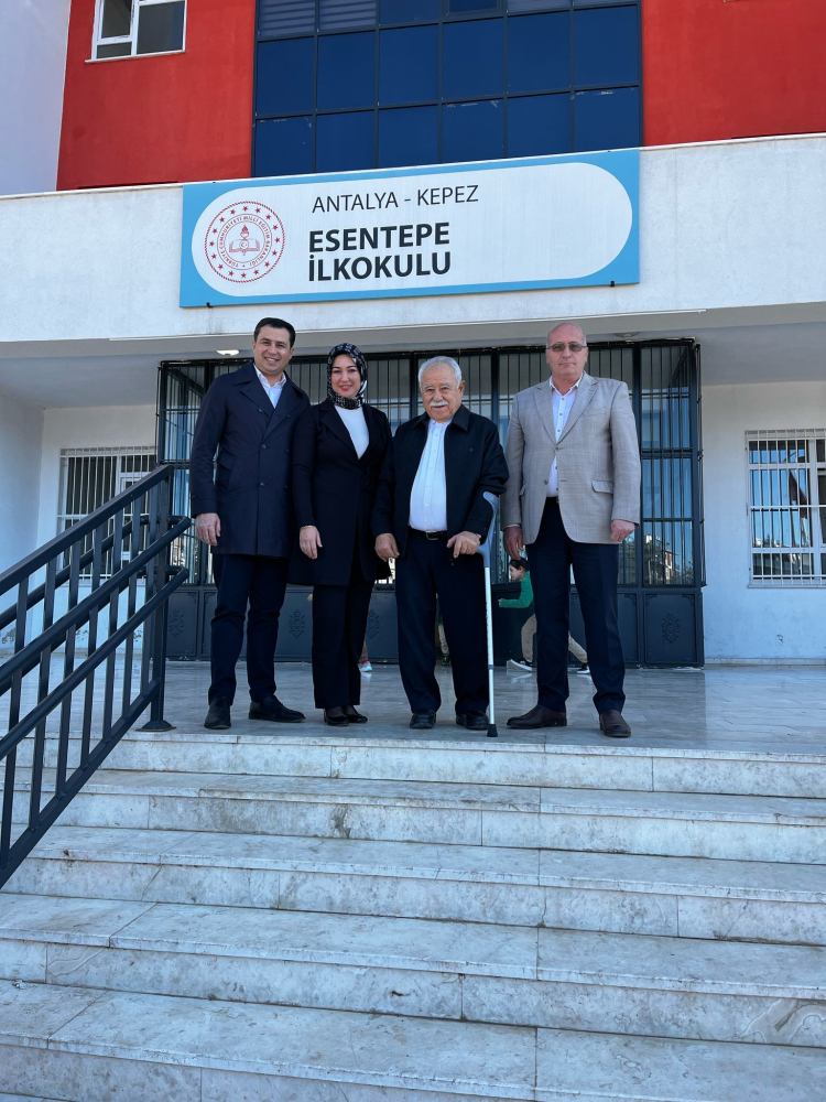 Kepez Esentepe İlkokulu Müdürü Nuri Tezcan ve Müdür Yardımcısı Sevgi Yanar da, ziyaretlerinden dolayı Hayırsever İş İnsanı Mehmet Cadıl’a teşekkürlerini iletti.