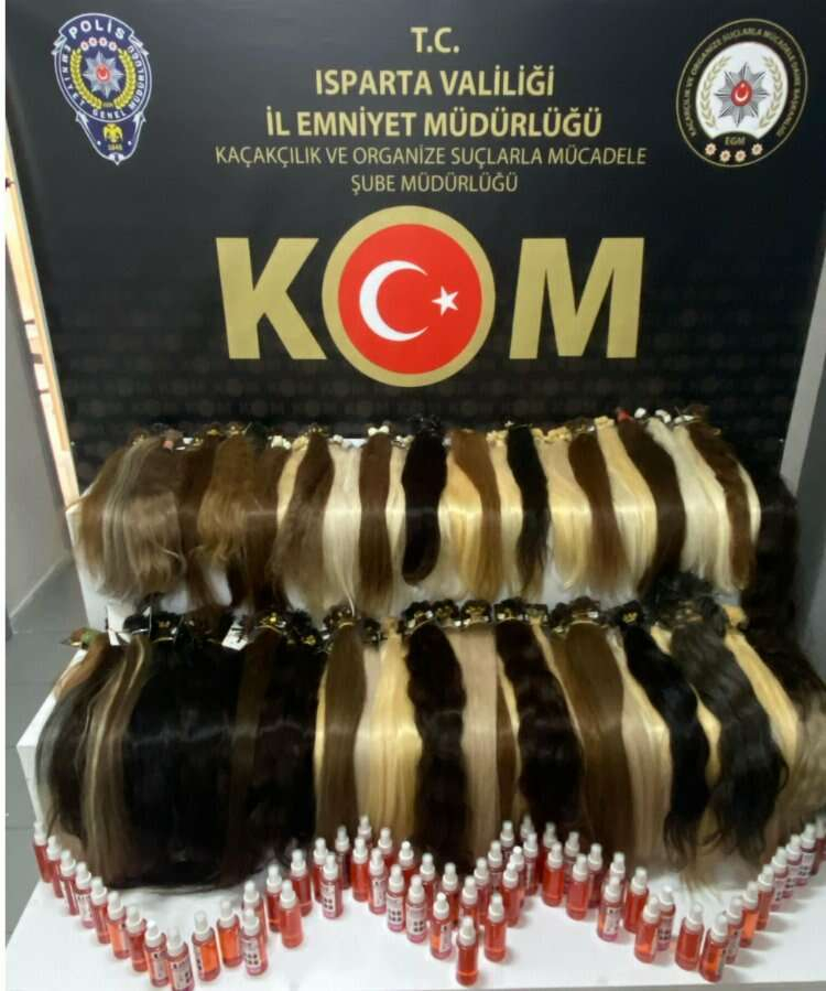 Isparta'da 17 bin bağ kaçak insan saçı ele geçirildi, 2 şüpheli yakalandı.