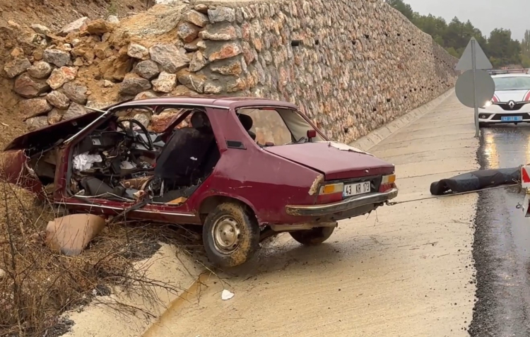 Kütahya'da istinat duvarına çarpan otomobilin sürücüsü ile eşi öldü