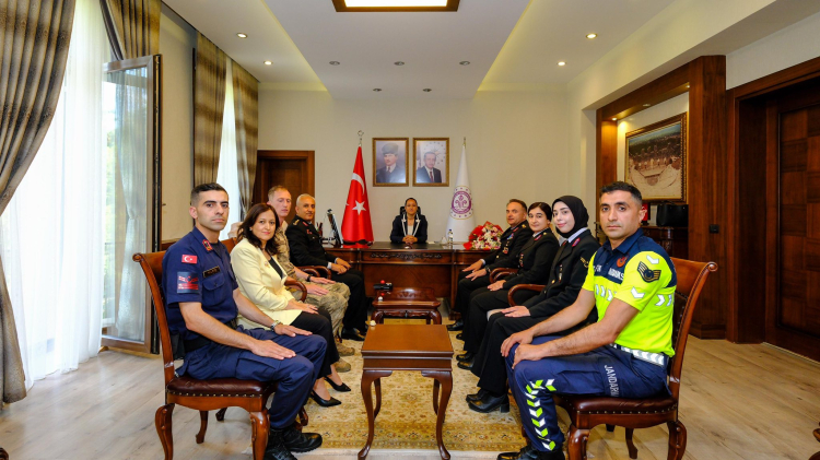 Burdur Valisi Tülay Baydar Bilgihan, Jandarma Teşkilatı’nın 186. kuruluş yıldönümü dolayısıyla ziyarette bulunan Burdur İl Jandarma Komutanı Jandarma Kıdemli Albay Mehmet Balcı ve beraberinde yer alan teşkilat mensuplarını kabul etti.
