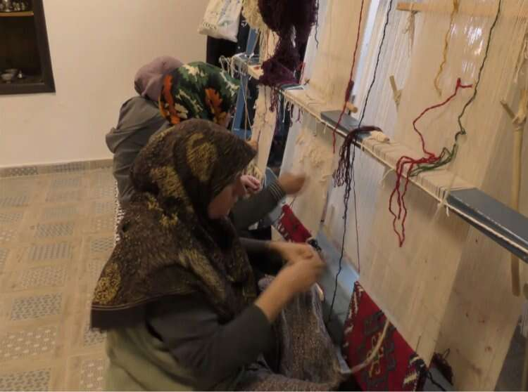 Kadınlar Halı Dokuyarak Üretime Katkı Sunuyor