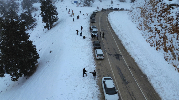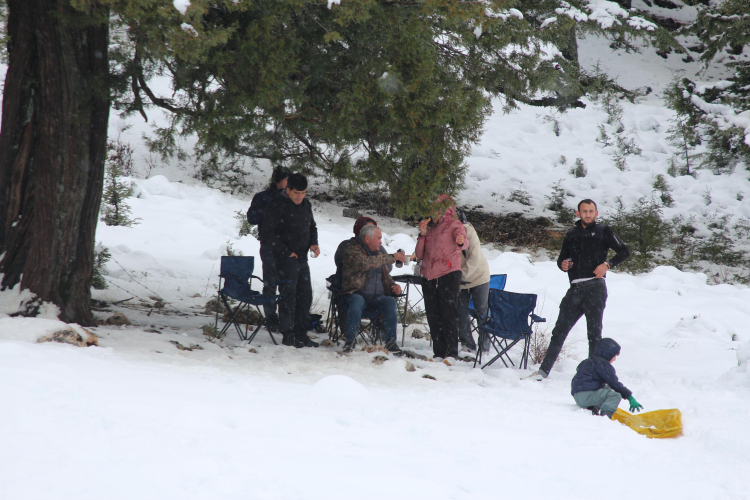 Beyaz örtüyle kaplanan mahalledeki 1560 rakımlı Kuruova Beli'ne gelen vatandaşlar, kar yağışının keyfini çıkardı.