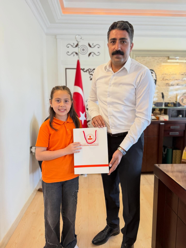 Uluslararası Kanguru Matematik Yarışması’nda Türkiye Finallerine kalma başarısı gösteren Atatürk İlkokulu öğrencimiz Merve SAYGIN ile “Sağlıklı Nesil Sağlıklı Gelecek” yarışmasında yazdığı etkileyici hikâyesiyle Burdur İl Birincisi olan Rukiye Ecrin AVCI, Kaymakamımız Sn. Gökhan ARSLAN tarafından makamında misafir edildi.