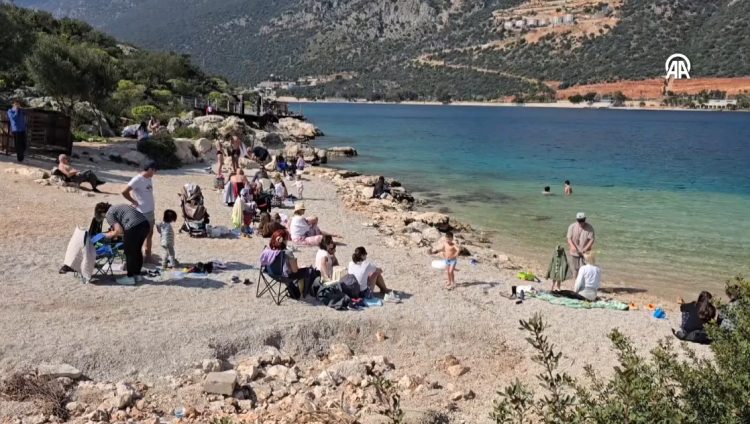 Antalya’nın Kaş ilçesinde güneşli havayı fırsat bilenler, martta deniz keyfi yaşadı.