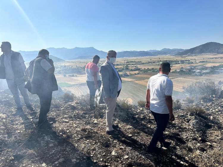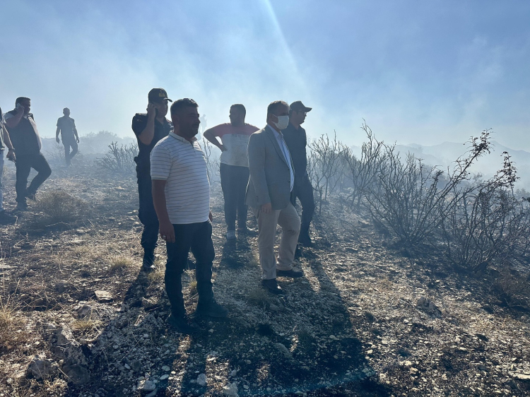 İlçe Kaymakamı Bayram Gale ,Bucak Orman İşletme Ekiplerinin hızlı müdahalesi sonucunda Kısa sürede kontrol altına alınarak söndürülen Susuz köyündeki orman yangını bölgesini yerinde inceledi.