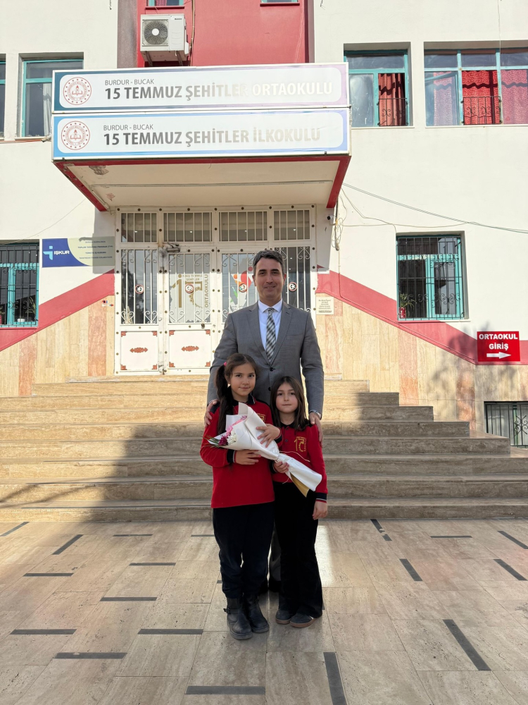 Bucak İlçe Kaymakamı Can Kazım Kuruca, İlçe Milli Eğitim Müdürü Bekir Canavar ile birlikte 15 Temmuz Şehitler İlkokulu/Ortaokulunu ziyaret etti.