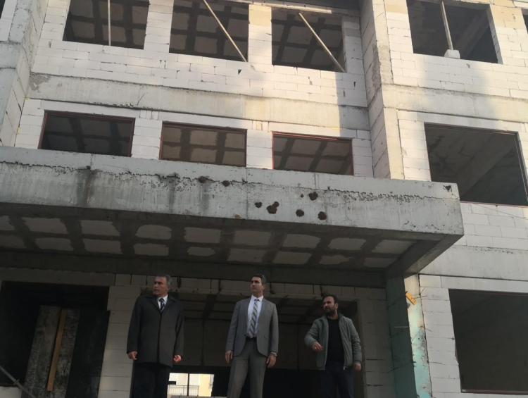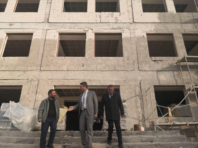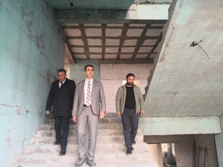 Kaymakam Kuruca, okul inşaatı incelemeleri sırasında çalışmaların son durumu hakkında yetkililerden bilgi aldı.