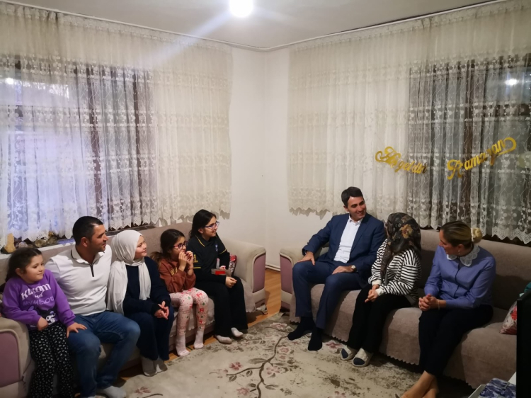 Bucak İlçe Kaymakamı Can Kazım Kuruca, eşi Eda Kuruca ve Sosyal Yardımlaşma ve Dayanışma Vakfı Müdürü Ali Göker ile birlikte, Fatih Mahallesi’nde ikamet eden Kayabaş ailesinin hanesine misafir olarak iftarlarını açtı.
