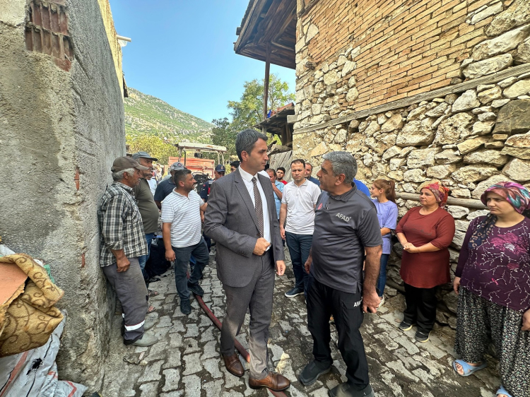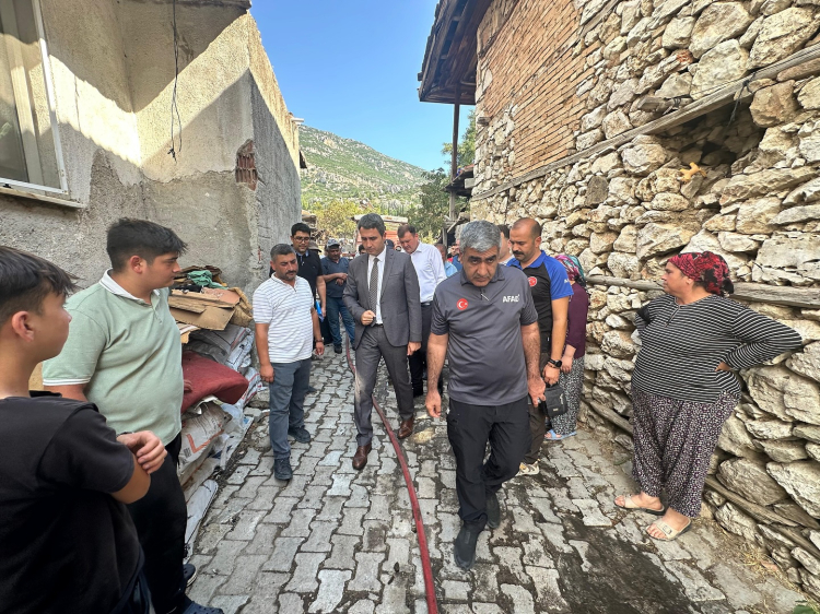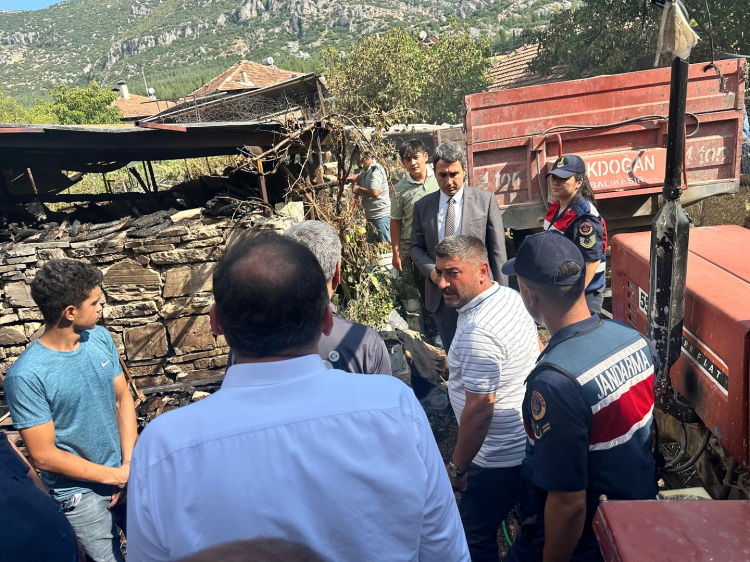 Bucak İlçe Kaymakamı Can Kazım Kuruca, İl AFAD Müdürü Teymen Şimşek ile birlikte, Susuz Köyünde çıkan ev ve ahır yangınını yerinde inceledi.