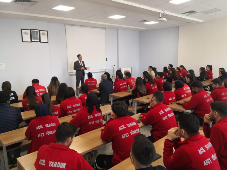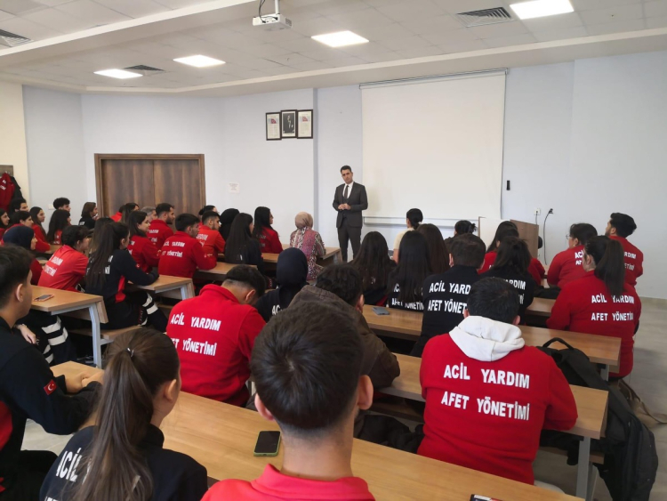 Gerçekleşen buluşmada öğrencilerle sohbet eden Kaymakam Kuruca, afet ve acil durum yönetiminin toplum için taşıdığı öneme dikkat çekerek, bu alanda eğitim gören öğrencilerin gelecekte üstlenecekleri görevlerin büyük sorumluluk gerektirdiğini ifade etti.