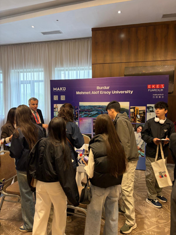Kazakistan’ın Almatı şehrinde düzenlenen Türk Üniversiteleri Tanıtım Fuarı’nda Burdur Mehmet Akif Ersoy Üniversitesi (MAKÜ), uluslararası katılımcıların yoğun ilgisiyle karşılaştı. 11 Nisan 2026 tarihinde EKET Fuarcılık tarafından organize edilen etkinlik, Türkiye’den ve Kuzey Kıbrıs Türk Cumhuriyeti’nden çok sayıda üniversiteyi bir araya getirdi.