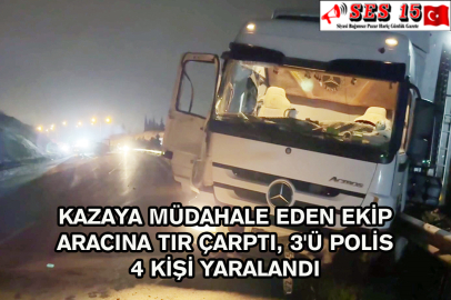 Kazaya Müdahale Eden Ekip Aracına Tır Çarptı, 3'ü Polis 4 Kişi Yaralandı