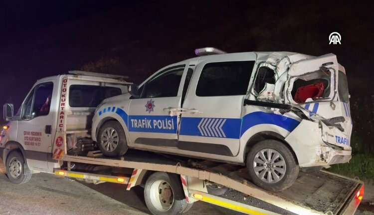 Bu sırada kazayı fark etmeyen sürücünün kullandığı 73 AAR 704 plakalı tır, olaya müdahalede bulunan polislerin aracına çarptı.