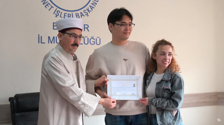 Müftü Çelik, Joo Hyeon Lee 'yi tebrik ederek “İhtida Belgesi” ile birlikte Diyanet İşleri Başkanlığı yayınlarından oluşan Kur'an-ı Kerim meali ve çeşitli hediyeler takdim etti. Türkçe olarak “Ceyhun” ismini alan genç adamın Müslüman oluşu duygu dolu anlara sahne oldu.