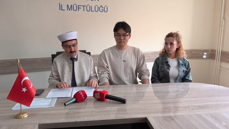 Burdurlu Yaşar Can (26) ile tanışmasının ardından Müslüman olmaya karar veren Koreli Joo Hyeon Lee (30), İlimiz Müftülüğü’nde düzenlenen ihtida töreninde şehadet getirerek Müslüman oldu.