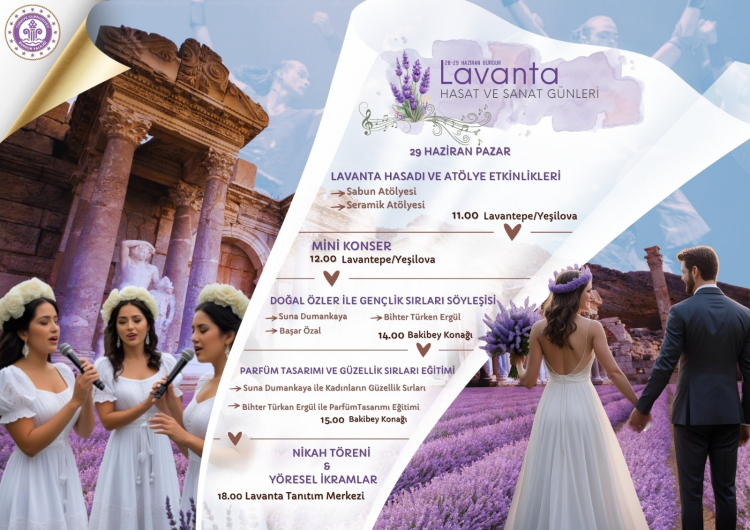 Festivalin finalinde ise “Aile Yılı” kapsamında “Toplu Nikâh Töreni” düzenlenecek. “Lavanta Hasat ve Sanat Günleri”, yalnızca bir festival değil; doğaya, üretime, kadim geleneklere ve çağdaş sanata saygının bir ifadesi olacak” diyen Burdur Valisi Tülay Baydar Bilgihan, “Burdur’un doğal, kültürel ve sanatsal zenginliğini bir arada yaşamak isteyen tüm misafirlerimizi bu özel etkinliğe davet ediyoruz” ifadelerini kullandı.