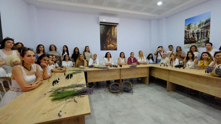 Ardından Vali Bilgihan ve beraberindekilere, kolonya yapımı, parfüm üretimi ve sabun yapımı anlatıldı.