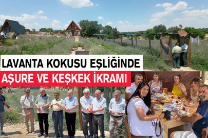 Denizli’nin Pamukkale ilçesine bağlı Gözler Mahallesi’nde, lavanta kokuları arasında düzenlenen etkinlikte aşure ve keşkek dağıtıldı.