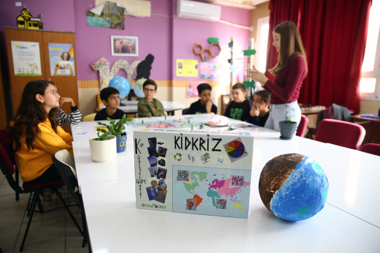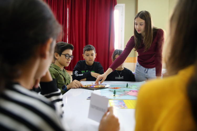 "Oyunda çark çevriliyor ve herkes kendi kıtasını seçerek oynuyor. Küresel iklim değişikliğiyle ilgili sorularımız ve bilgi kartlarımız var. Bu kartlar aynı zamanda puanları da içeriyor. Soruları doğru cevaplayan öğrenciler bilgi kartı çekiyor, hem yeni bilgiler öğreniyor hem de puan toplayarak eğleniyorlar."