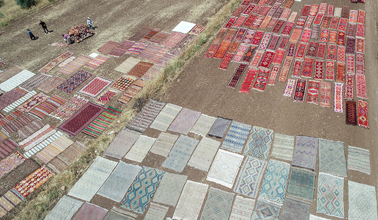 Birbirinden değerli halı ve kilimlerin tarlalarda yerini almasıyla oluşan görsel şölende de emekçi kadınlar rol oynuyor.