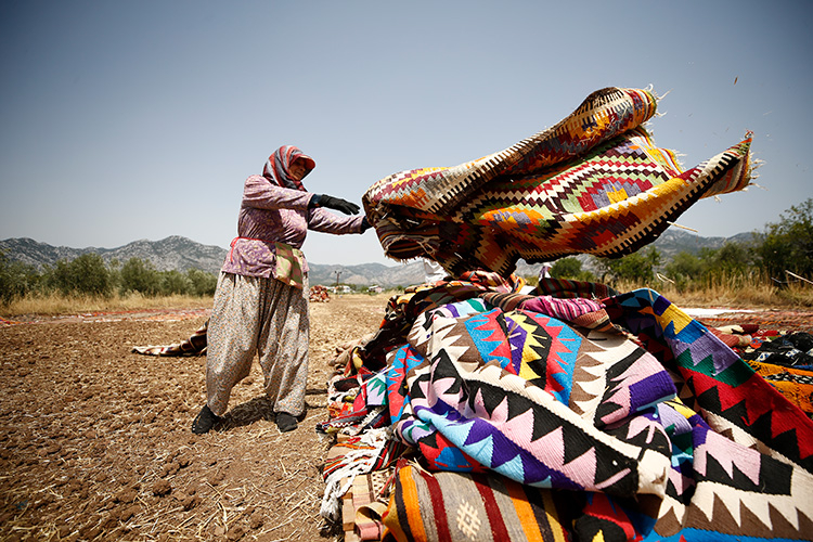 İlkbaharda tarım ürünlerinin hasadı için günlerce çalışan kadın işçiler, yazları ise halı ve kilimlerin renkleri solarak pastele dönüşmesi ve mikroplardan arınması için ter döküyor.