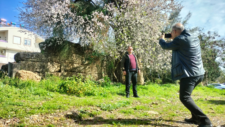 İlçede hava sıcaklığının mevsim normallerinin üzerinde seyretmesi nedeniyle antik kent ve çevresindeki badem ağaçları beyaz ve pembeye büründü.
