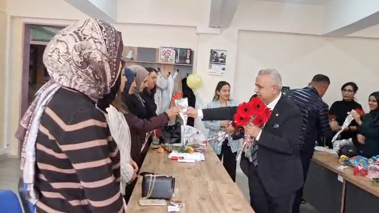 Öğretmenlere karanfil takdim eden Dernek Başkanı Ercan Öztürk’e, Belediye Başkanı İlyas Delen de eşlik etti.