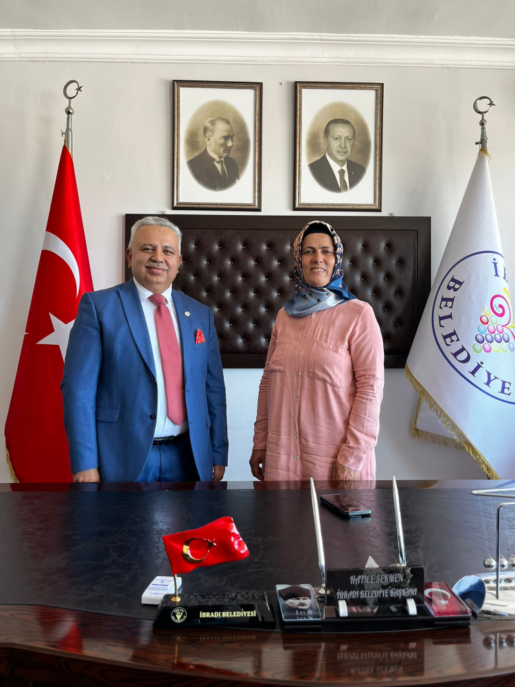 İbradı Belediye Başkanı Hatice Sekmen, Mellililer Kültür ve Dayanışma Derneği Başkanı Ercan Öztürk’ü ağırlamaktan duyduğu memnuniyetini ifade etti.