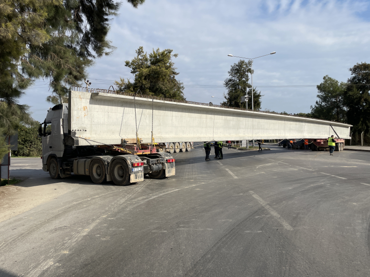 Beton blok yüklü tırın vinçle bulunduğu noktadan kaldırılması için çalışmalar sürüyor.