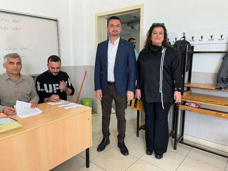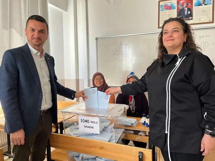 Milletvekili Mustafa Oğuz, Hüseyin Türker Ortaokulu’nda 1040 nolu sandıkta eşi Fadime Oğuz ile birlikte oyunu kullandı.