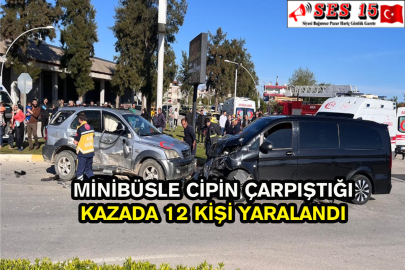 Antalya'nın Serik ilçesinde minibüs ile cipin çarpışması sonucu 12 kişi yaralandı.