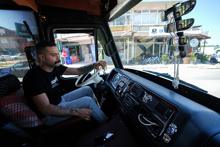 İzmir'de 23 yıldır berberlik yapan Sercan Eroğlu, iş yerine dönüştürdüğü minibüsle gezerek hizmet veriyor.