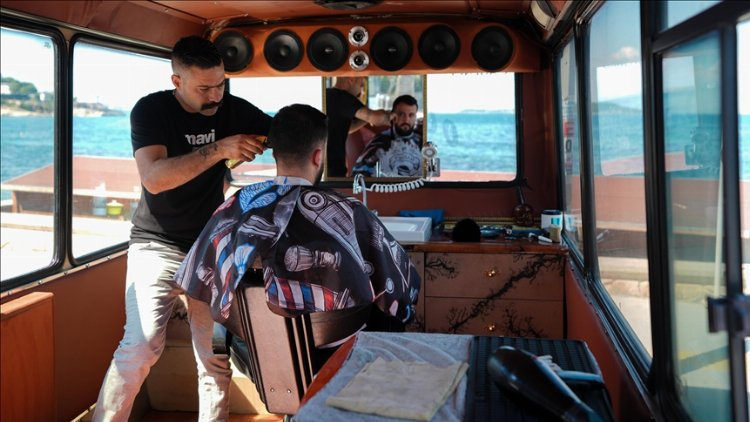 Yaklaşık 2 haftadır müşterilerine minibüste hizmet veren Eroğlu, isteyenleri orman ve deniz manzarası eşliğinde de tıraş edebiliyor.