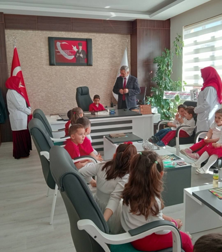 23 Nisan Ulusal Egemenlik ve Çocuk Bayramı kutlamaları kapsamında, Ravza 4-6 Yaş Kur’an Kursu öğrencileri İlçe Müftüsü Osman Demirel’i makamında ziyaret etti.